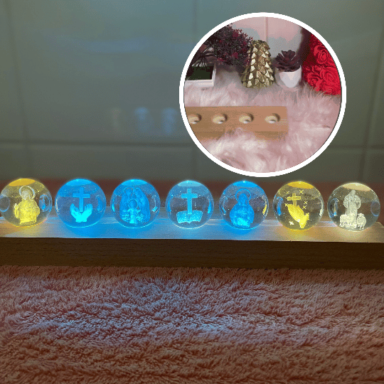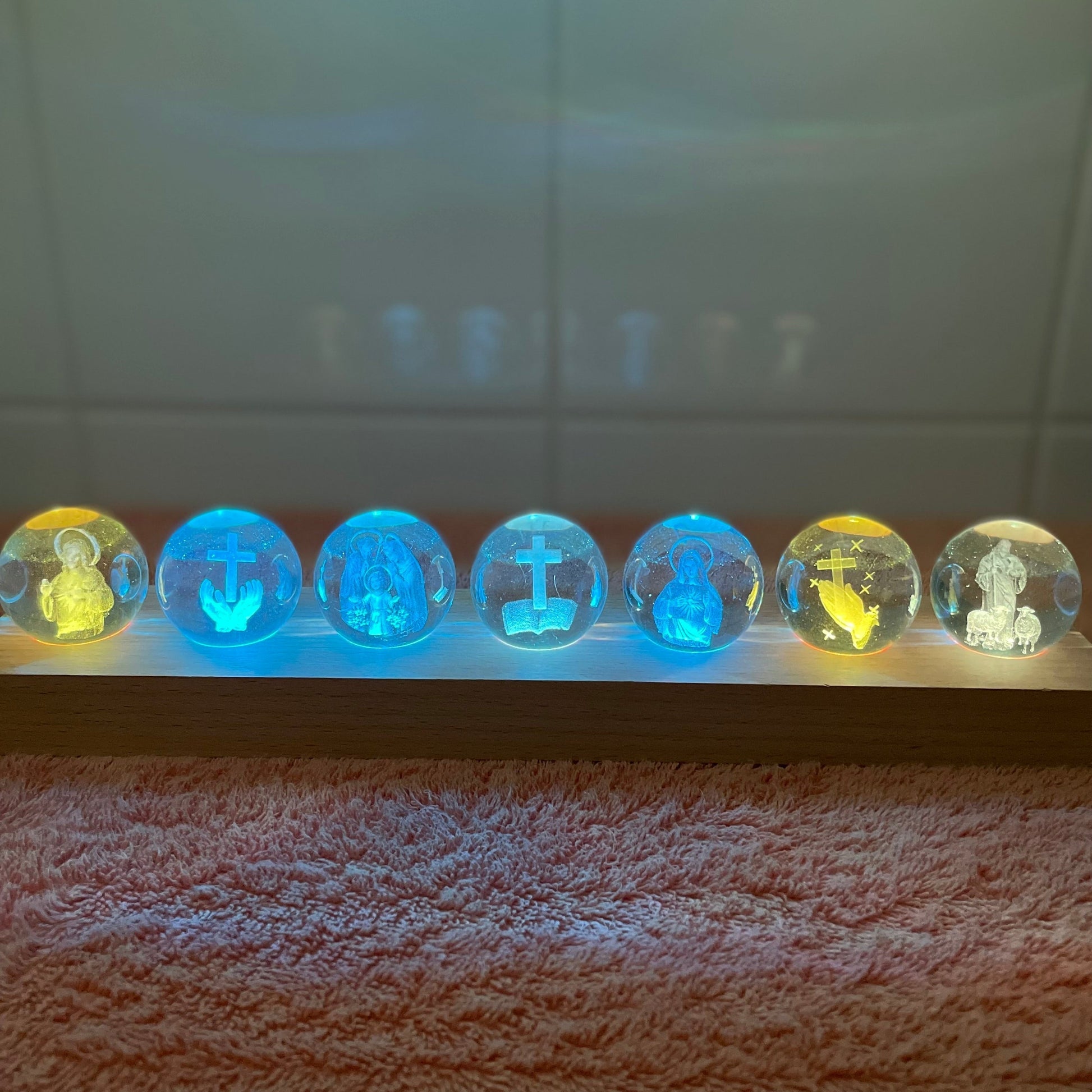 Switch on its gentle luminous base, and watch the crystal radiate with a calming, ambient light. 🌙🌟 Perfect for quiet moments of prayer, meditation, or as a bedside beacon of peace. The light symbolizes His presence—always near, always brightening your space and spirit.